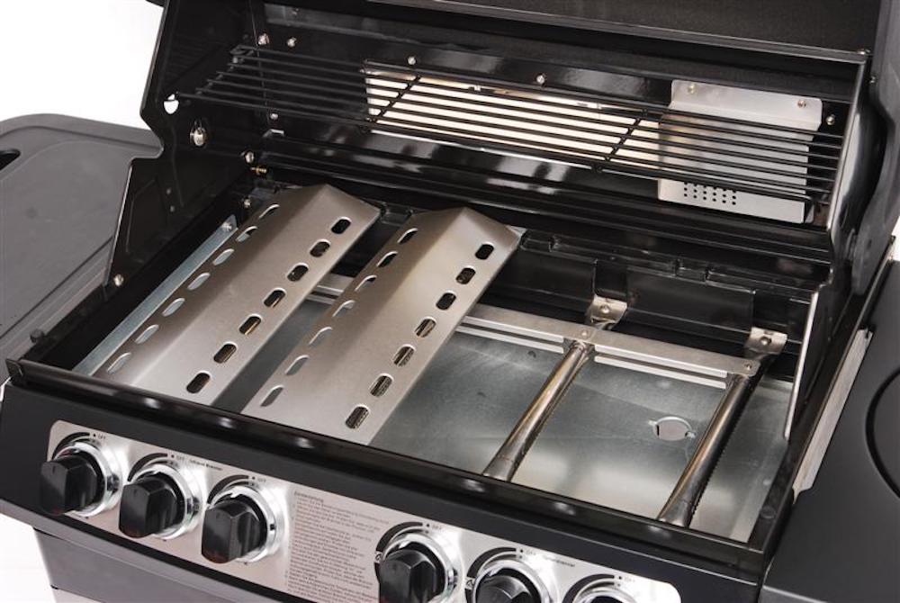 Ein weiteres Profielement ist der einstufige Infrarot-Heckbrenner. Gasgrills mit Backburner oder Heckbrenner werden in der Gastronomie häufig eingesetzt beispielsweise bei der Zubereitung von knusprigen Hähnchen oder Dönerspießen. Das Grillgut wird durch die Infrarotbestrahlung und hohe Temperatur besonders schmackhaft. Der Backburner erzeugt eine Temperatur von 200 bis 250 °C. Den Heckbrenner kann man selbstverständlich auch nutzen, um bei niedrigerer Temperatur indirekt zu grillen. Die besten Ergebnisse erreichst du mit einem zusätzlichen Drehspieß, der als Zubehör erhältlich ist.