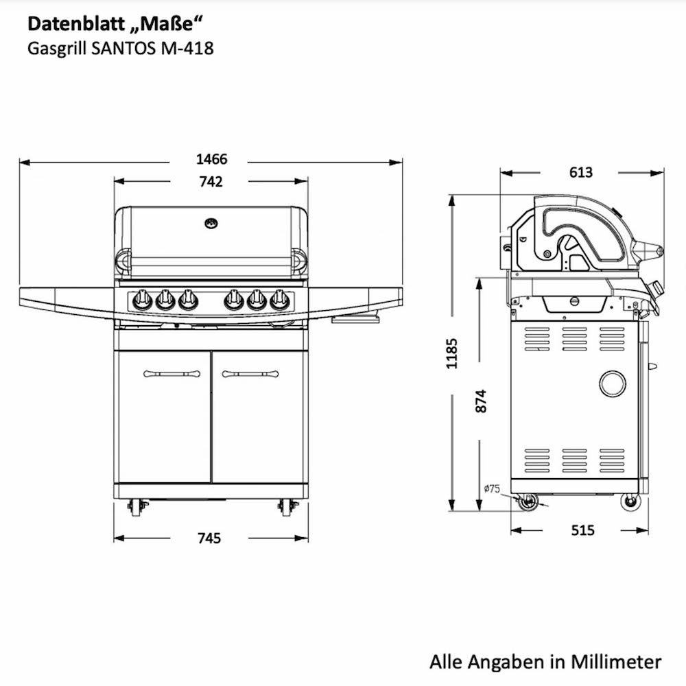 Gasgrill Edelstahl mit 3 Hauptbrennern plus Infrarot-Heckbrenner und 800 Grad-Seitenbrenner
